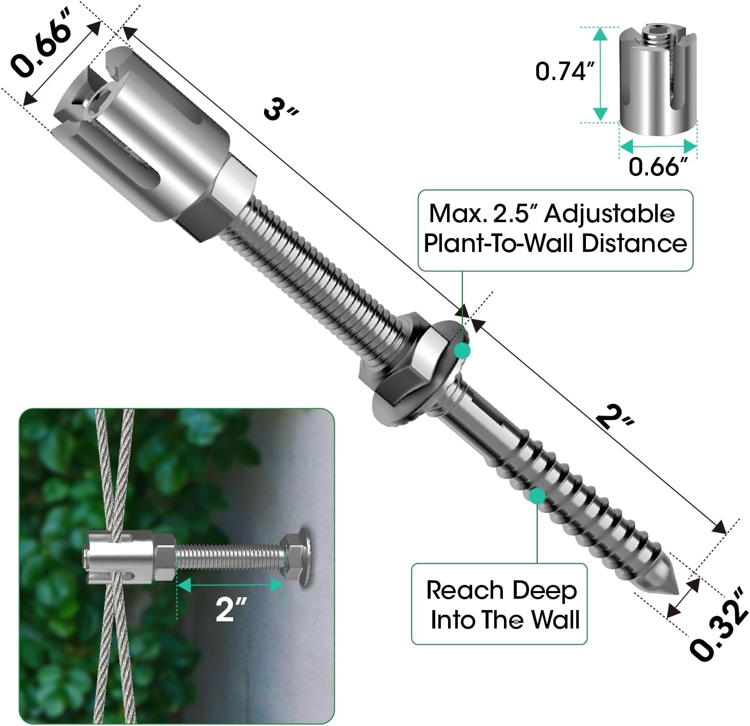 - 【Customizable Modular System】Create custom wire trellis for climbing plants outdoor with diamond, square, or fan patterns. Each kit includes 53ft wire rope and 10 standoffs, expandable for larger installations on brick, concrete, or wood surfaces.