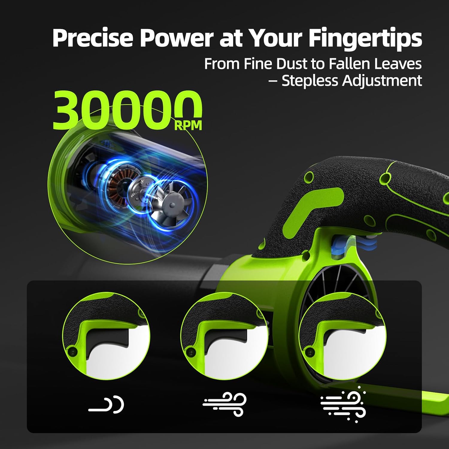 - Durable Build & High-Performance Motor: Built for long-term outdoor use, this battery-powered leaf blower delivers consistent airflow with a high-performance motor reaching up to 30,000 RPM, ensuring reliable and powerful performance for all your yard and garden tasks